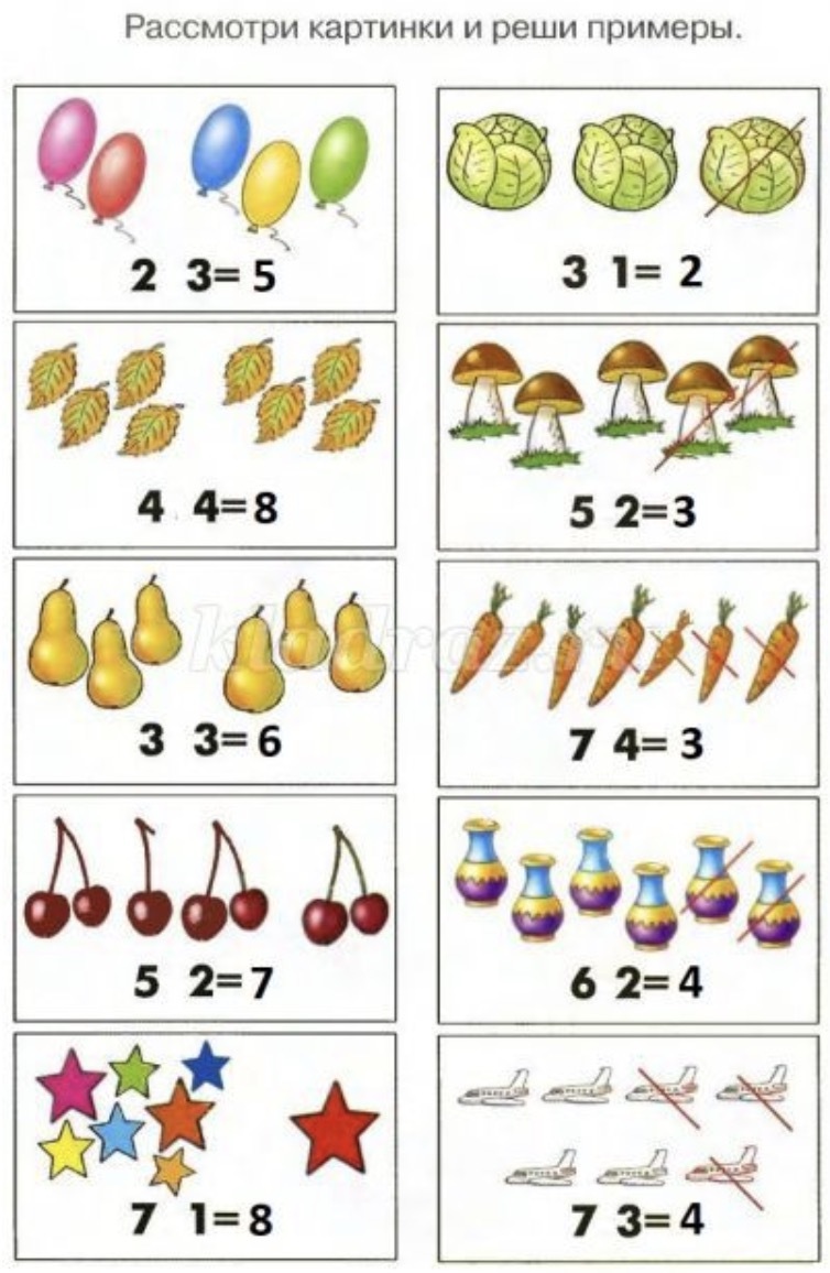 4 задание «Какой знак надо поставить: + или – » (карточки с картинками)