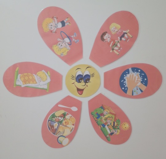 -Чтобы быть здоровым, и улыбаться(воспитатель вешает на доску серединку цветка)