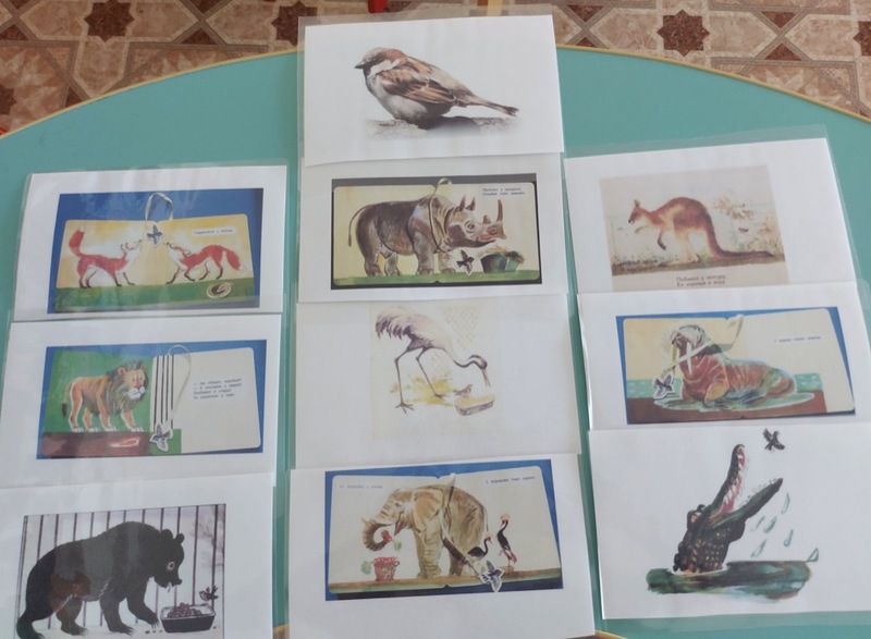 Используются не только иллюстрации из книги, но и изображения тех животных, которые упоминались в стихотворении. Отдельные иллюстрации дают возможность для выполнения большего количества разнообразных заданий.