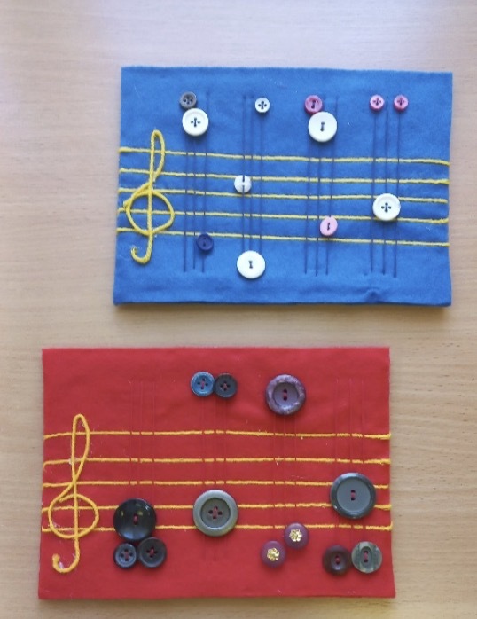 - Затем дети пробуют сами сочинять свою мелодию из пуговиц и озвучивают её голосом или инструментами. Творческая работа: