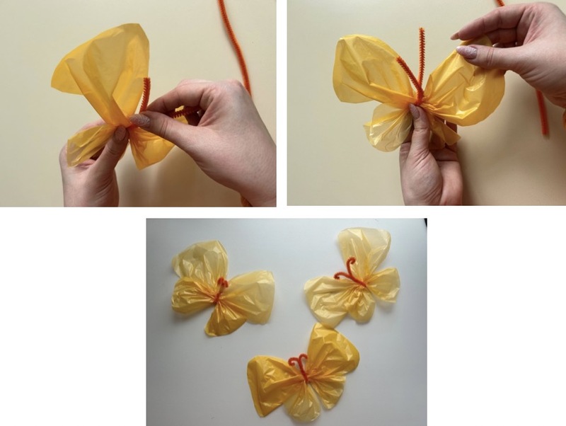 -развивать умение выполнять фигуру бабочки «Лимонницы» из целлофанового пакета с использованием синельной проволоки по инструкции педагога;