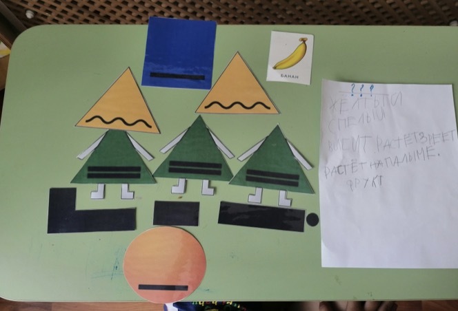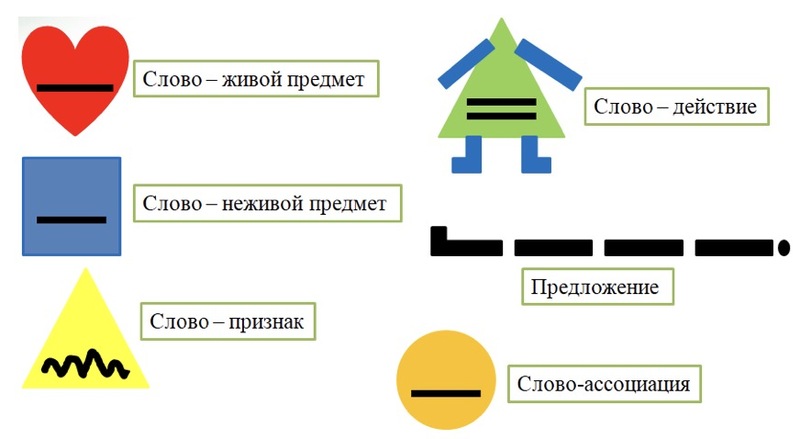 Для детей, которые пока не умеют читать, можно использовать символы, пиктограммы, схемы. Составляют синквейн устно, при помощи наводящих вопросов, дети учатся выделять главную мысль, отвечать на вопросы и по определенному алгоритму создают свои устные нерифмованные стихотворения. Можно предложить ребёнку нарисовать предмет.