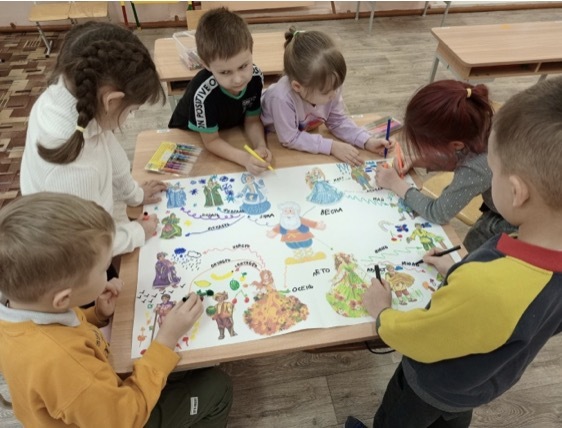 Мы с ребятами перенесли эту историю на интеллект-карту! Такая карта стала опорой, подсказкой и местом общения детей. В течение месяца ребята подрисовывали картинки, связанные с каждым месяцем и учили друг друга (рис. 1).