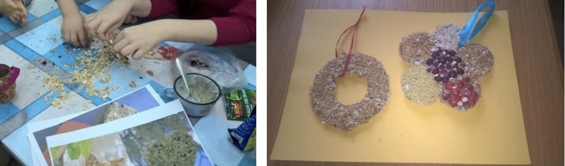 Вот и мы вместе с ребятами и родителями делали экологические кормушки (из семечек, корма для попугаев, клюквы, рябины, пшена и других злаков.)