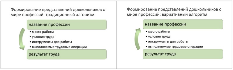 Однако, организация профориентационной работы в дошкольных учреждениях сталкивается с рядом проблем. Во-первых, зачастую доминирует формальный подход, опирающийся на традиционный алгоритм: название профессии - место работы - условия труда - инструменты - выполняемые трудовые операции - результат труда. Такая формула алгоритма ознакомления с профессиями, безусловно, дает определенное представление о профессии, но в силу своей отвлечённости и абстрактности от реальной жизни и самих детей, не вызывает у них подлинного интереса и ограничивает возможности для развития творческого потенциала.